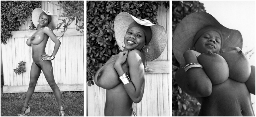 Three more shots from my collection of Sinora Kif wearing a big floppy sunhat to protect her big tits from the sun. To say she was well-endowed is obvious, but worth examining further!