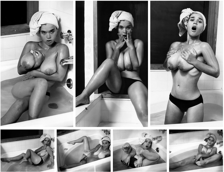 A full set of a soapy Suzanna Pritchard and her big tits. I’ve published the first image before, but this is the full set of her frolicking in the bath in black panties. There are 10 images in total that members get access to all.