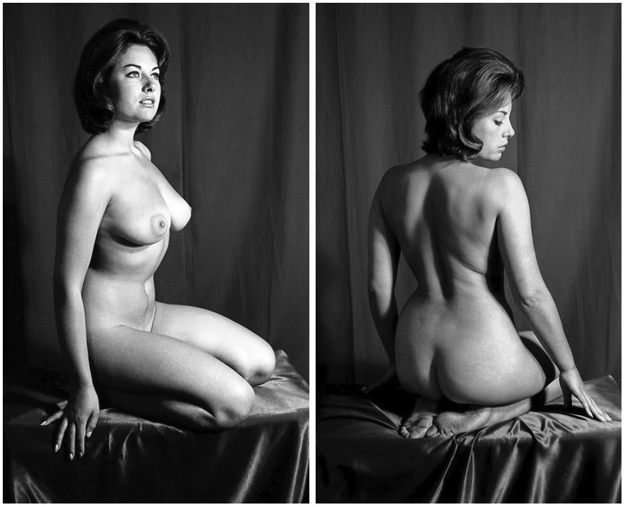 Two studio shots of a maturing June Palmer from the 1970s. Her figure looks as fabulous as ever, even if starting to slightly round out, which isn’t a bad thing. Plus a great view of her round tits and natural bush.