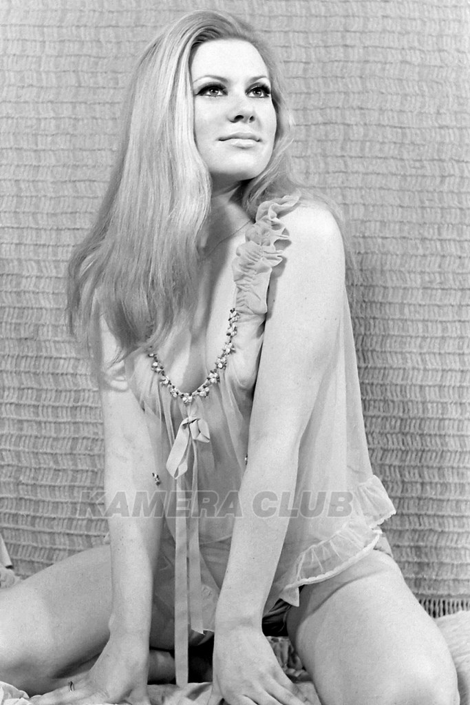 Two different shots of the luscious Linda Dean from a large set of 35 mm negatives. Taken at Jason studio’s in the 1960s, there are four sets of images of Linda in different outfits. My favourites are these two with the tinsel and her in the sheer négligée.