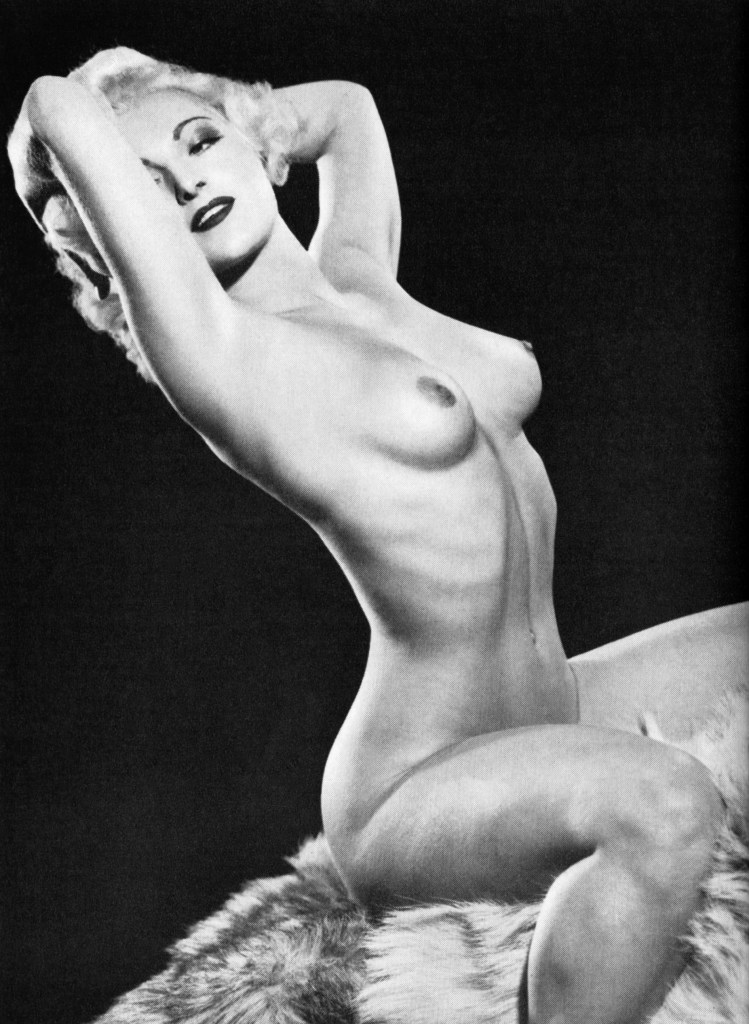 Another June Simpson shot from Solo No.5 P32 (1958) by Harrison Marks. I love the platinum blonde wavy hair that June had, and it always seemed to be perfect. The side profile of her naked body against the black background works perfectly in this shot. I especially like the nice round curves of her bum and the way the light highlights it. :)